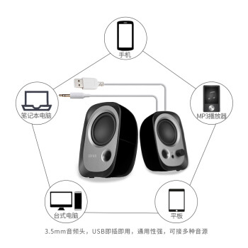 漫步者(EDIFIER) R12U 2.0时尚桌面迷你有线小音响小音箱笔记本台式电脑通用音箱USB 黑色