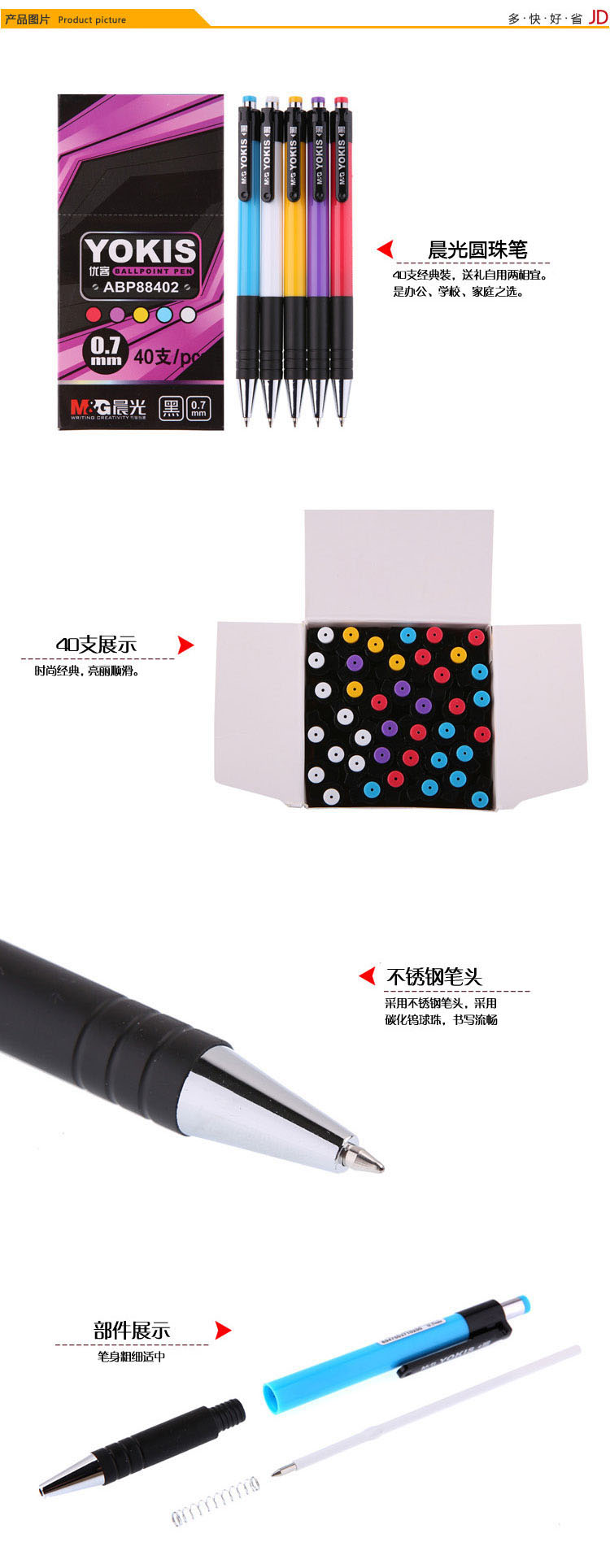 晨光(M&G)ABP88402圆珠笔0.7mm 40支装 黑色