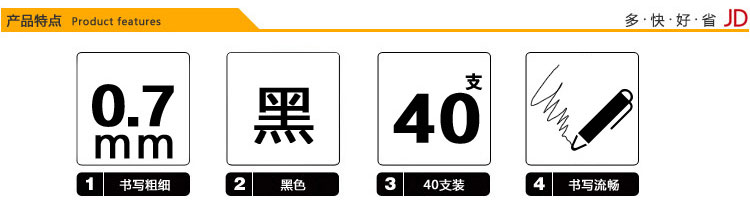 不绣钢和镍白铜笔头 碳化钨球珠 不易漏墨 不易漏油 抗压 抗摔 韧性强,握笔处采用防滑设计  书写顺畅 颜色鲜艳 不易褪色