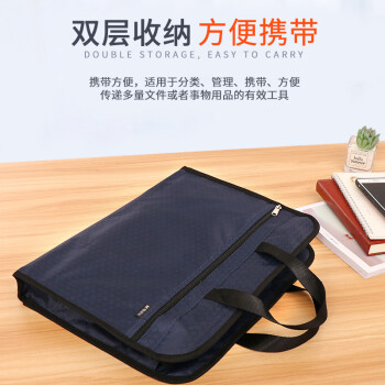 晨光(M&G) 手提文件袋帆布袋公文包手提袋文件包大容量手提包收纳牛津布料拉链式商务办公会议培训班资 加宽双层ABB904D4/蓝