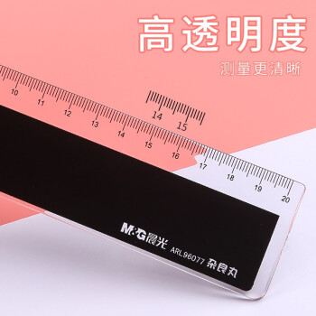 晨光(M&G) 15/20/30cm白直尺塑料尺高透直尺亚克力UV直尺学生办公设计用尺子 彩色直尺-加宽20cm 96077