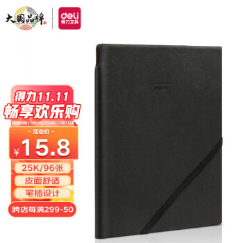 得力(deli)25K96张可插笔绑带皮面本 黑色22215