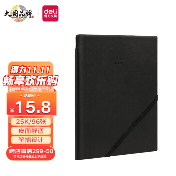 • 商品名称:得力(deli)25K96张可插笔绑带皮面本 黑色22215