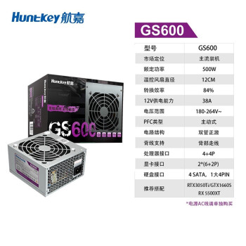 航嘉(Huntkey) 电源电脑台式机GS500静音电源