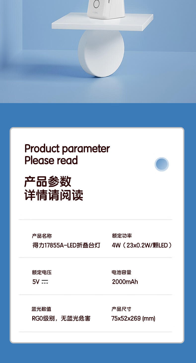 • 商品名称:得力(deli)LED折叠台灯17855A