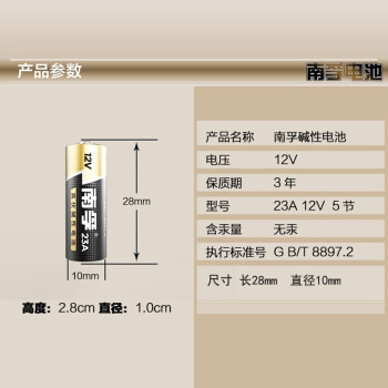 南孚传应电池23A 12V电池a23s小号23安12伏1028车库卷帘闸门铃遥控器23a12v电池