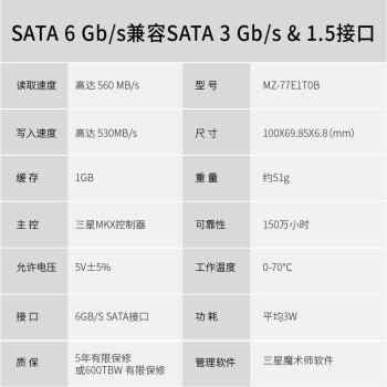 • 商品名称:三星固态硬盘(MZ-77E1T0B)