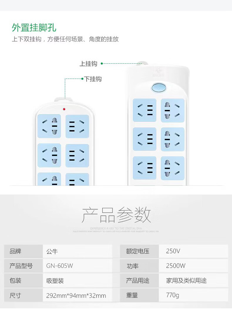 • 商品名称:公牛(BULL)GN-605W 插线板