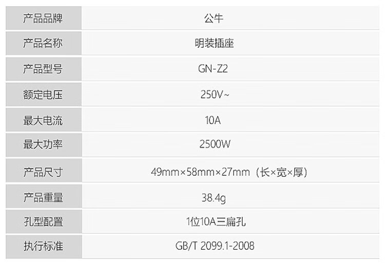 • 商品名称:公牛 GN-Z2插座