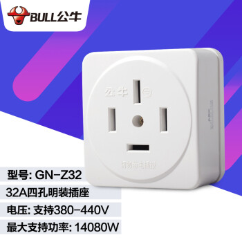 公牛三相四线插头插座32A工业插头440伏380V25安三项16A四角四脚大功率4芯插头 32A明装四脚插座GN-Z32