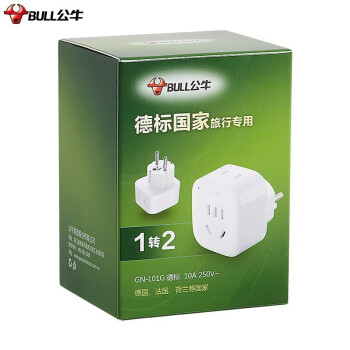 公牛欧标转换插头德标转国标出国插座欧洲德韩国西班牙葡萄牙法国俄罗斯荷兰土耳其越南泰国巴厘岛电源转换器 2插位德标转换器【可插2个电器】GN-L01G