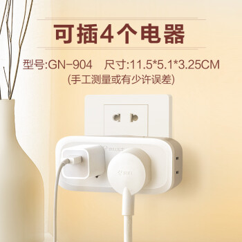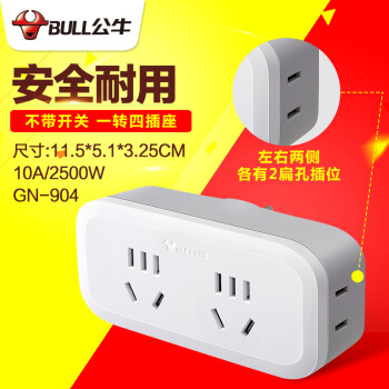 公牛一转多拓展排插一转二插座一分四电源转换器墙壁上多功能不带线无线插板多项多空转接头家用扦板面板 无开关 可插4个电器GN-904