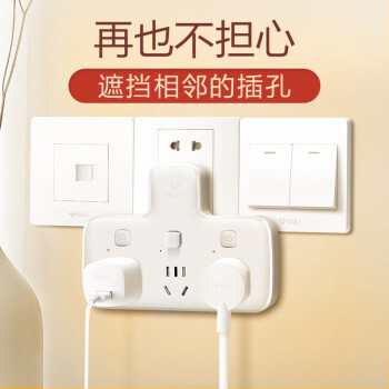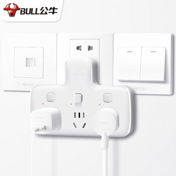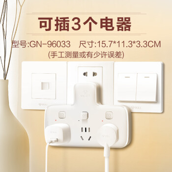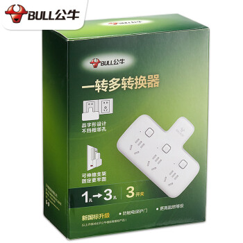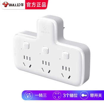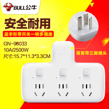 公牛品字形一转多插位一转二三排插无线插座不带线小插板墙壁墙开拓展插孔转换器插头一变多插排拖线板 带3开关 可插3个电器GN-96033