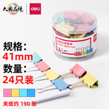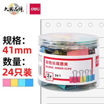 • 商品名称:得力(deli)24只41mm彩色长尾夹票夹 8552